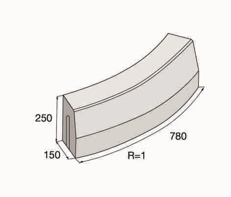 Obrubník cestný oblúkový 15x25x78 - vonkajší r=2,0m